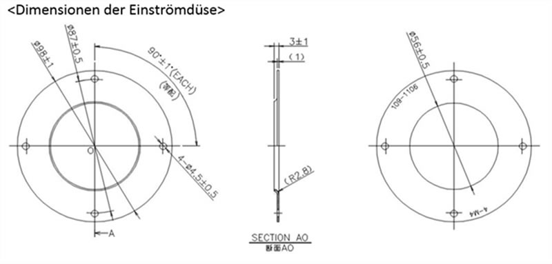 Bei der Montage eines Zentrifugallüfters ist eine spezielle Einströmdüse erforderlich. Ohne sie sinkt die Ansaugleistung und die in den Spezifikationen aufgeführten Leistungen können nicht garantiert werden.
